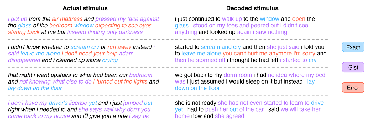 Semantic reconstruction of continuous language from non-invasive brain recordings: Researchers at The University of Texas at Austin have created a semantic decoder, an artificial intelligence system that can transform a person's brain activity into a continuous stream of text.
